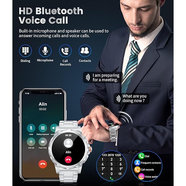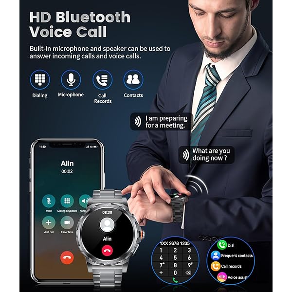 【Bluetooth Calling and Smart Notifications】: The mens smart watch employs Bluetooth 5.0 technology, significantly reducing call latency, allowing you to effortlessly connect to your phone via Bluetooth indoors or outdoors, eliminating worries about missed calls.When connected via Bluetooth, men's smart watch allows call answering and making without phone retrieval, and also receives social media messages with notifications. For peace, slide down gently and tap the crescent moon icon to activate "Do Not Disturb" mode.(Bluetooth Distance 9-10 meters).