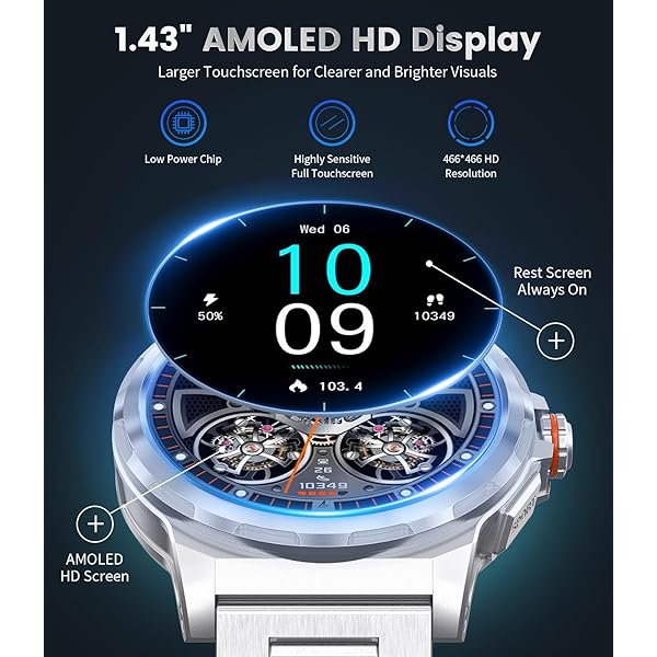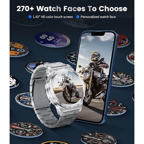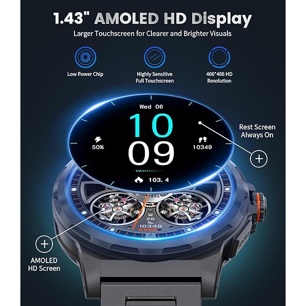 【HD Touchscreen & Customized Watch Faces】This rugged smart watch for men features a HD touchscreen with a resolution of 466*466, delivering high contrast, vibrant colors, energy efficiency, and exceptional touch sensitivity compared to other screens (LCD, TFT, etc.). The sport watch supports 270+ watch faces4 built-in + 270+ available through the app), allowing you to choose different ones according to your preferences. If you're not satisfied, you can design and upload your own images to enhance the aesthetic appeal and quality of the smartwatch, boosting your confidence.