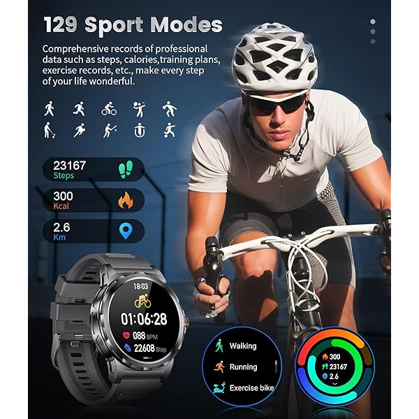 【120+ Sports Modes】The black sports smart watch is crafted to be your ultimate workout companion, offering an impressive 120+ sports modes tailored for every type of fitness enthusiast(21 built-in + 100+ available through the app). Whether you're passionate about traditional sports or eager to explore new ways to stay active, this mens fitness watch is designed just for you. It's not just a watch; it's a fitness partner that motivates and adapts to your lifestyle. Here’s why this feature-packed smartwatch is a must-have for anyone serious about their fitness journey. Get ready to elevate your workouts and achieve your goals like never before!.