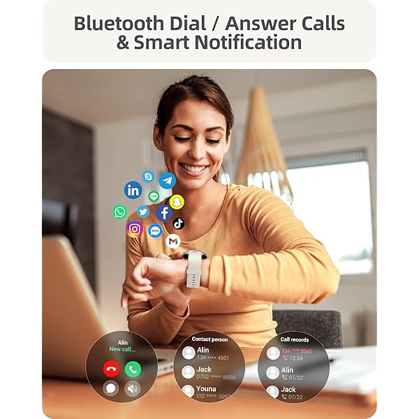 【STAY CONNECTED WITH EASE: MAKE AND ANSWER CALLS & SMART NOTIFICATIONS】Connect your Smart Watch to Bluetooth, allowing you to answer calls without picking up your phone. Whether you’re running, cycling, working, commuting on the subway, at the gym, or driving, you can answer calls with a simple tap. Stay informed with smart reminders for calls, SMS, Texts, and App notifications (including Facebook, WhatsApp, Instagram, Twitter, TikTok, and more). Effortlessly read notifications with just a lift of your wrist! Instant reads, instant ease—all on your wrist! Note: The watch does not support sending messages.