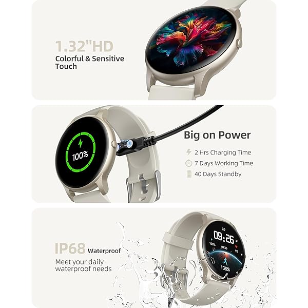 【ULTRA LONG BATTERY LIFE & IP68 WATERPROOF/DUSTPROOF】Discover the  Smartwatch Compatible with Android and iPhone smartphones! Enjoy up to 7 days of usage and an incredible standby time of 40 days, all from just a 2-hour charge. With compatibility for Android 6.0/iOS 9.0 and above, this smartwatch ensures no one gets left behind. Built for your active lifestyle, it features an IP68 waterproof and dustproof design, allowing you to embrace rain, sweat, and even wash dishes worry-free. Please note: Battery life may vary with usage habits.