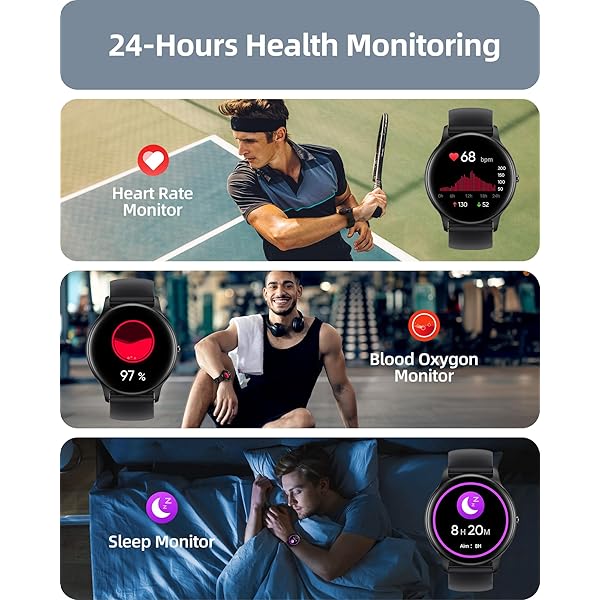 【YOUR 24-HOUR HEALTH COMPANION】Introducing the Smart Watch for Men & Women – your ultimate health tracker! Monitor your heart rate and blood oxygen levels 24/7 to enhance your wellness journey. Enjoy detailed sleep analysis, including deep sleep, light sleep, REM stages, wake times, and quick naps, providing valuable insights into your sleep quality. This watch features specialized women’s health tracking, including menstrual cycle monitoring. Smart stress monitoring helps you maintain balance. Easily log your weight through the app and track your BMI to stay informed about your health. Embrace a healthier lifestyle right from your wrist—because we genuinely care about your well-being!.
