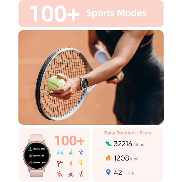 【ULTIMATE FITNESS TRACKER WITH 100+ SPORTS MODES】Elevate your fitness journey with this advanced Fitness Watch, offering over 100 indoor and outdoor sports modes to cater to every sports enthusiast. Whether you’re walking, running, cycling, skipping, playing basketball, or football, you’ll find the perfect mode to track your activity. During your workouts, this pedometer watch automatically records your daily steps, distance traveled, calories burned, and active minutes, providing precise data that syncs seamlessly with your mobile device. Gain valuable insights into your daily activities and stay motivated to achieve your fitness goals!.