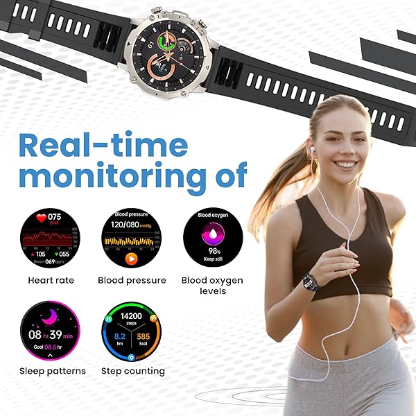 Comprehensive health monitoring: Track your well-being with real-time health data monitoring. Our smart watch monitors heart rate, blood pressure (not a medical device), blood oxygen levels, and sleep patterns. Additionally, it tracks all-day activity data like steps, distance traveled, and calories burned, helping you stay informed about your fitness journey.