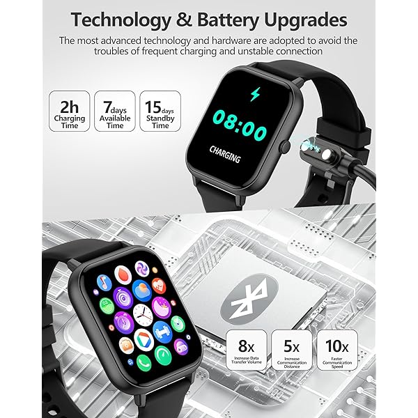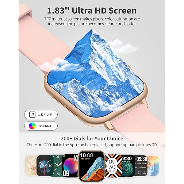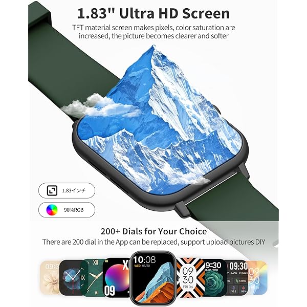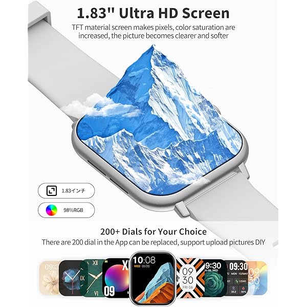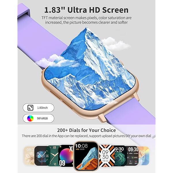 【1.83"HD Large Screen & Dial DlY】This smart watches for men/women, it uses an ultra-high-definition full-touch color screen made of TFT material, the picture is clearer, the touch is smoother, and the color saturation is higher. We have designed more than 200 exquisite watch faces, and you can also upload your favorite photos to make your own watch face to show your unique style.