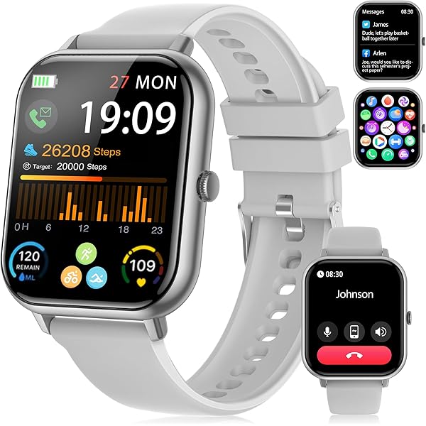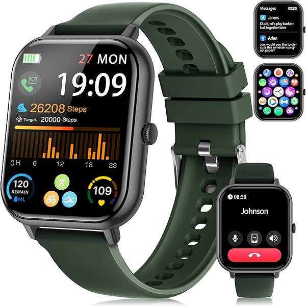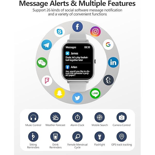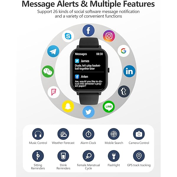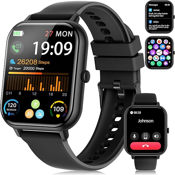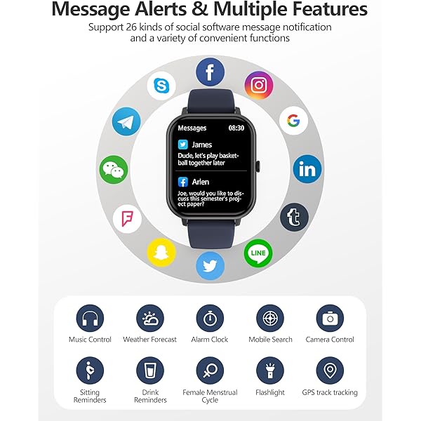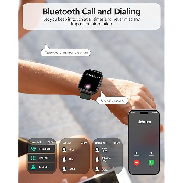 【Bluetooth Call & Message Notification】This smart watch is suitable for Android and iPhone phones. After the watch is connected to the phone via Bluetooth, it can answer/make calls, allowing you to know the incoming call information without looking at the phone. It will also vibrate to remind you of other application messages. You can adjust the vibration intensity. In any case, you will not miss important information, making your life more convenient.
