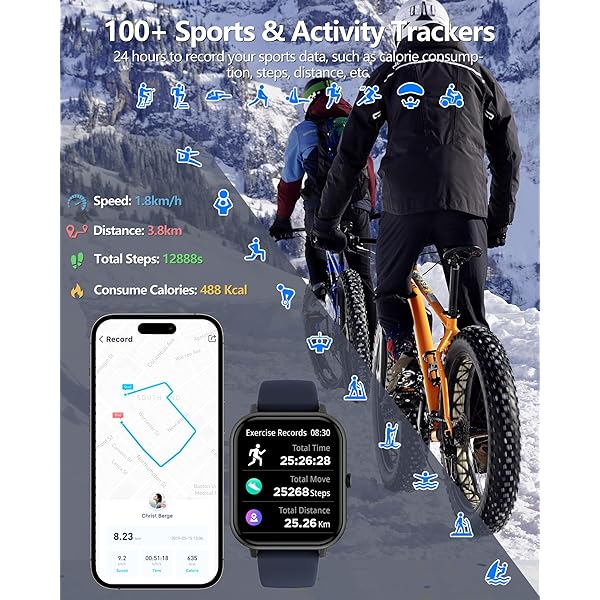 【24/7 Health Monitoring & Activity Tracking】This activity tracker can track heart rate and blood pressure in real time 24 hours a day. When you enter sleep mode, it will analyze your sleep quality and provide effective suggestions to improve your sleep time and regulate your life. As a sports watch, it has 123 sports modes and can record your activity data throughout the day, such as calorie consumption, steps, activity track, etc.