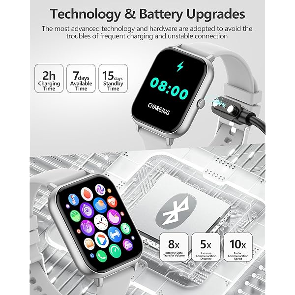【IP68 Waterproof & Large Capacity Battery】This waterproof watch has IP68 nano high-tech waterproof and dustproof rating, and it can have a good waterproof effect in the daily life of washing hands,sweating,raining and other situations ,It will not affect its normal operation.A two-hour full charge can last for 7-15 days, and standby time can last up to 30 days.