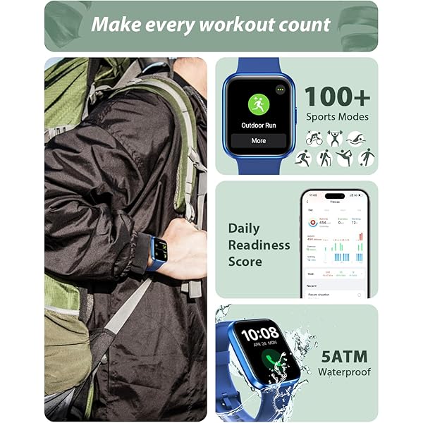 【Fitness Tracker & 100+ Sports Modes】Fitness watch comes with 100+ sports modes such as soccer, walking, running, swimming, hiking, cycling, mountaineering, yoga, etc. Accurately record all-day activities like steps, distance, calories burned, miles walked, and active minutes. The fitness tracker for men women is IP68 waterproof, so you can wear it in the swimming pool, wash hands, and shower without worry. However, it is not recommended for use in hot water or seawater.