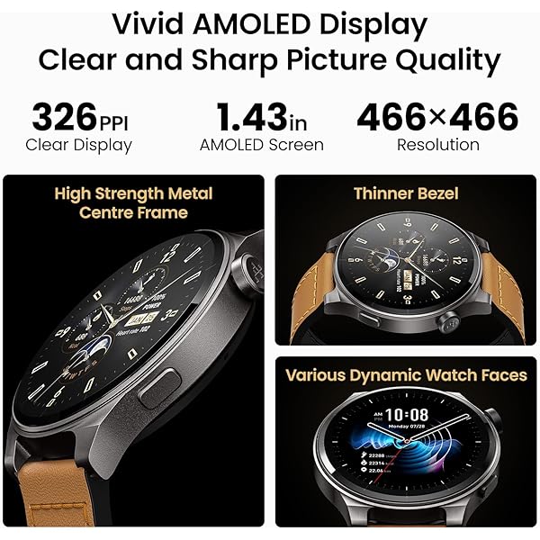 [1.43''HD Touch AMOLED Screen] Compared with the traditional LCD panel , AMOLED has low energy consumption, the panel emits light independently, make it richer and brighter, and the screen can be clearly seen outdoors during the day.